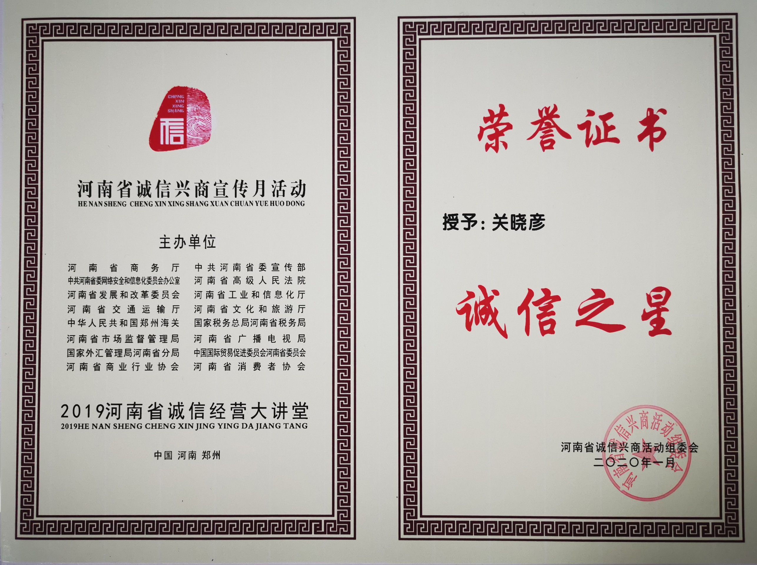 驻马店市优秀企业家荣誉称号
